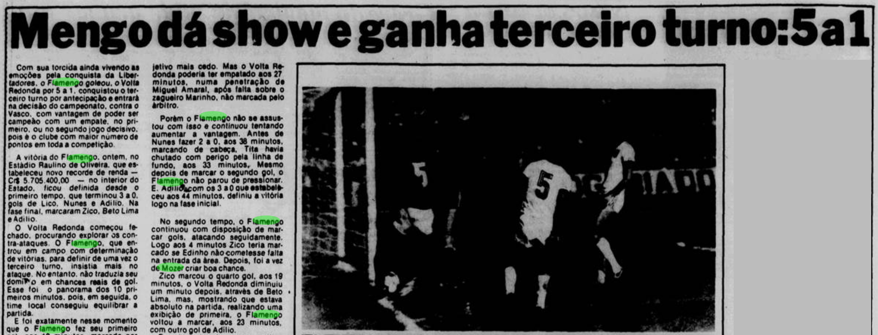 RAUL, LEANDRO, MARINHO, MOZER E JÚNIOR; ANDRADE, ADÍLIO E ZICO; TITA, NUNES E LICO